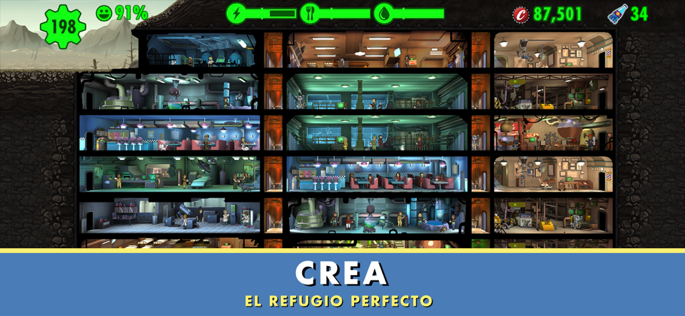 Fallout Shelter te pone al mando de un refugio subterráneo Vault-Tec de última generación. Crea el refugio perfecto, mantén contentos a sus moradores y protégelos frente a los peligros del yermo.