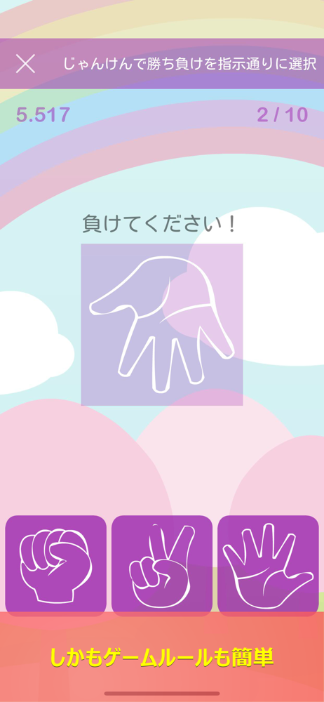 じゃんけんで勝ち、負け、あいこを指示通りに選択