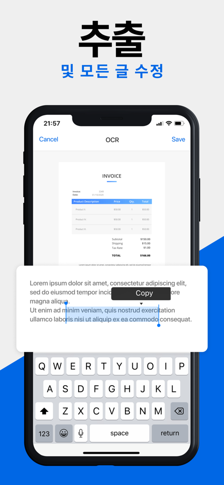 - 내장에 탑재된 OCR (광학 문자 인식) 기능