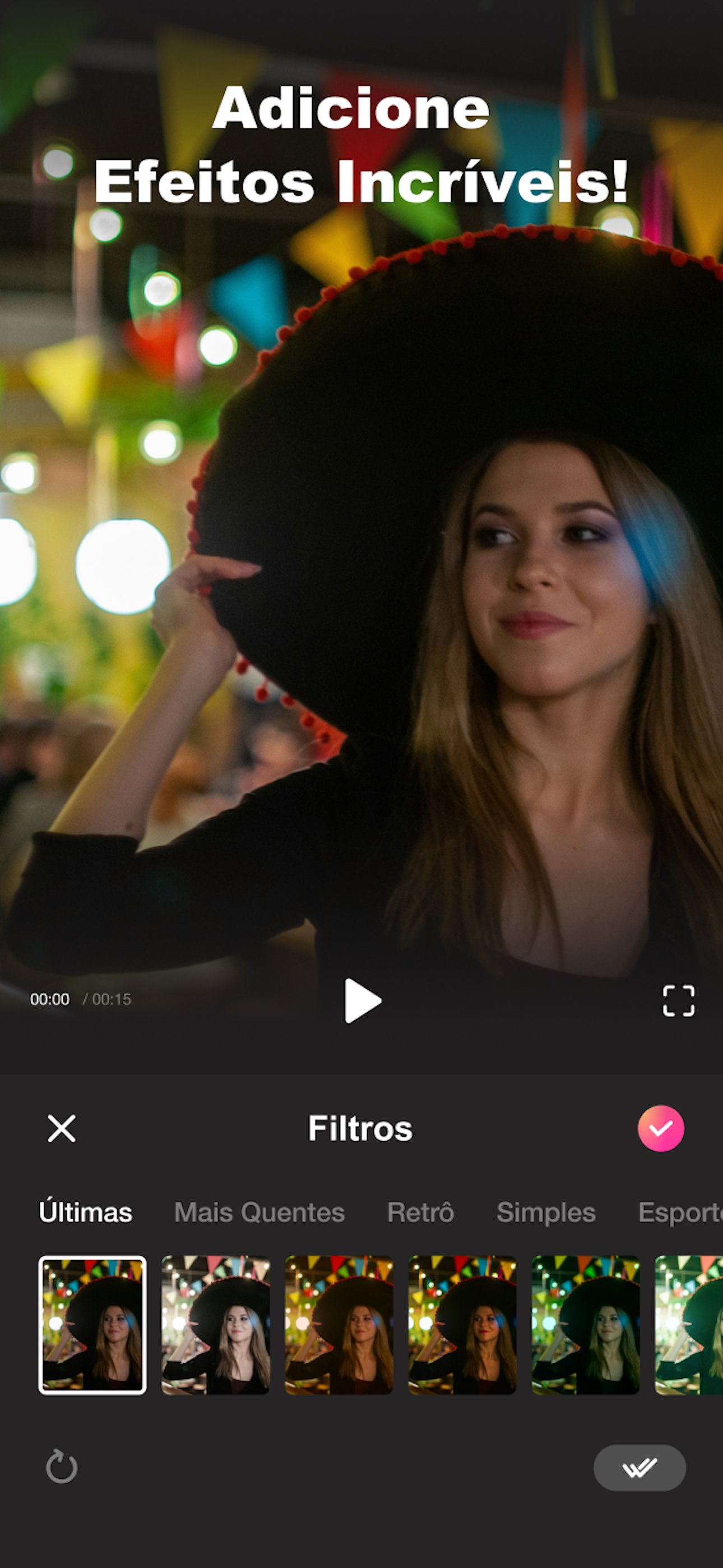 • Adicione filtros de vídeo estilo filme ao seu vídeo