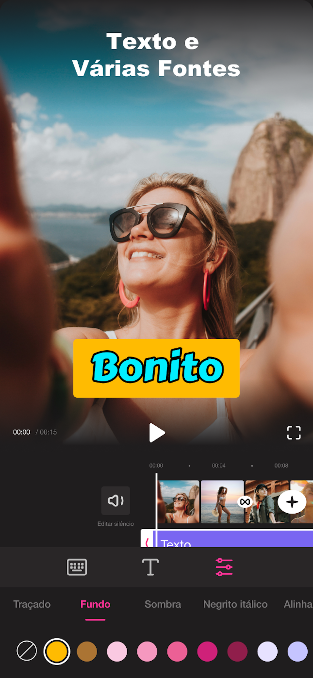 • Linha do tempo multitrilha: adicione facilmente vídeos picture-in-picture, fotos, adesivos e texto aos seus vídeos.