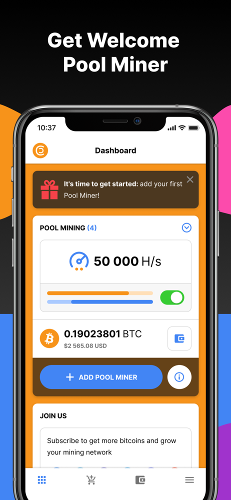 Experience hardware-free mining of cryptocurrencies with no speed limits. CT Pool brings mobile crypto mining to a new level with innovative Pool Mining technology, eliminating the need for additional hardware. CT Pool simplifies the mining process — focus on the desired mining speed and hashrate duration; the rest is managed by us! Join millions of users worldwide, and transform your cryptocurrency mining experience with CT Pool!